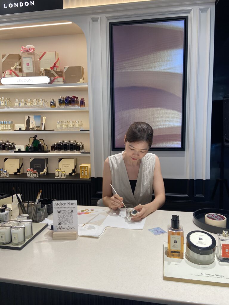 I thought people just wanted the end product – the personalized bottle. But actually, watching the calligraphy engraving happen in real time is a big part of the appeal. People gather around, they ask questions, they film it, they post it on Instagram.